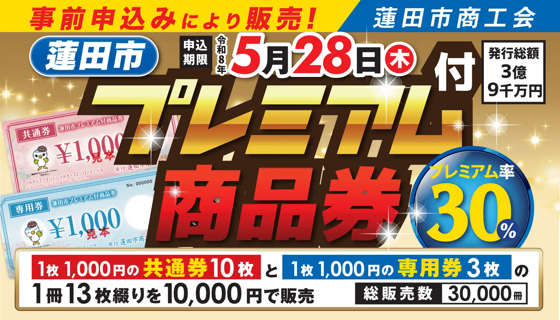 令和8年 6月27日(土)28日(日)10:00~15:00先行引換販売(蓮田市役所)予定。